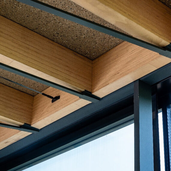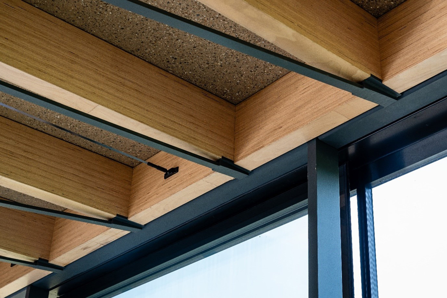 This innovative project centres on a striking exposed timber-concrete composite roof, combining LVL beams and precast concrete planks to deliver both structural efficiency and architectural elegance. A refined expression of hybrid engineering, the design celebrates material honesty and construction logic.