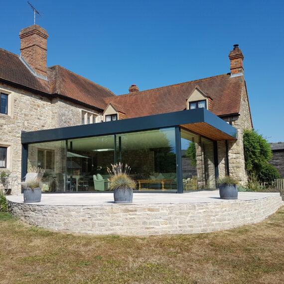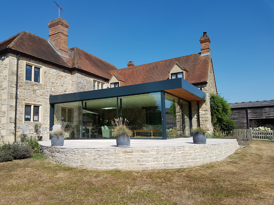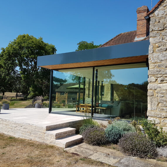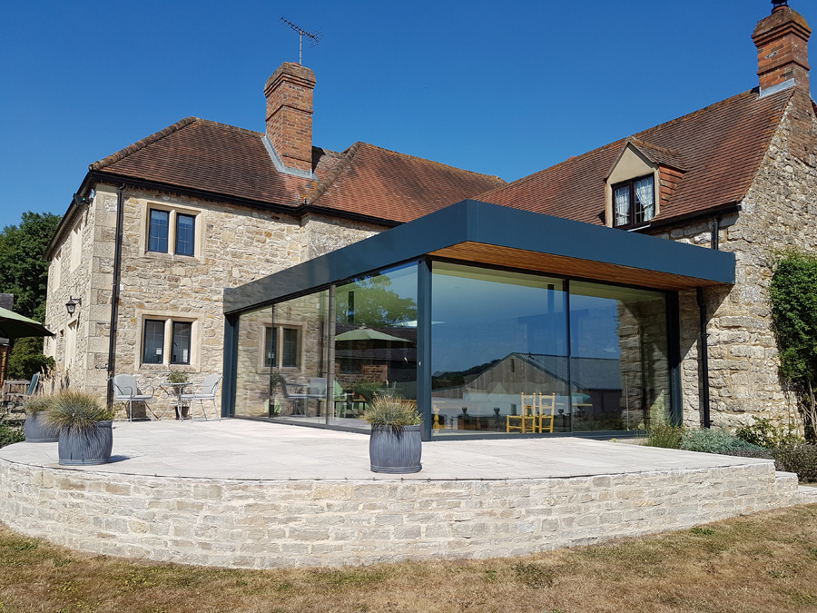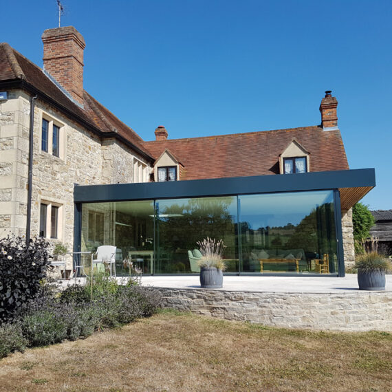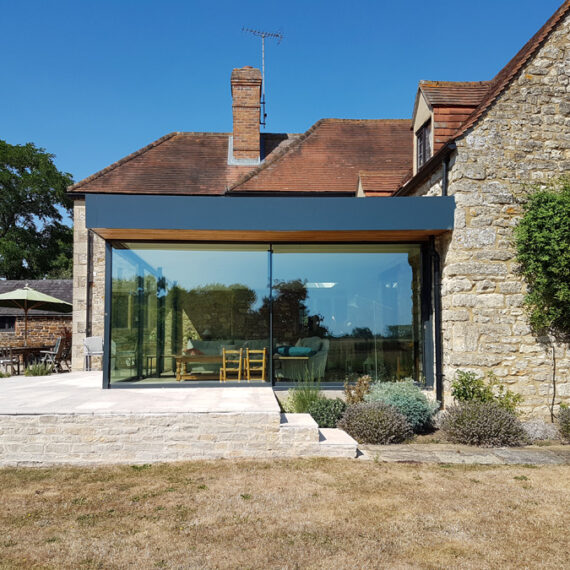 This project features a contemporary glazed extension to a traditional stone-built family home, set in the rural countryside.