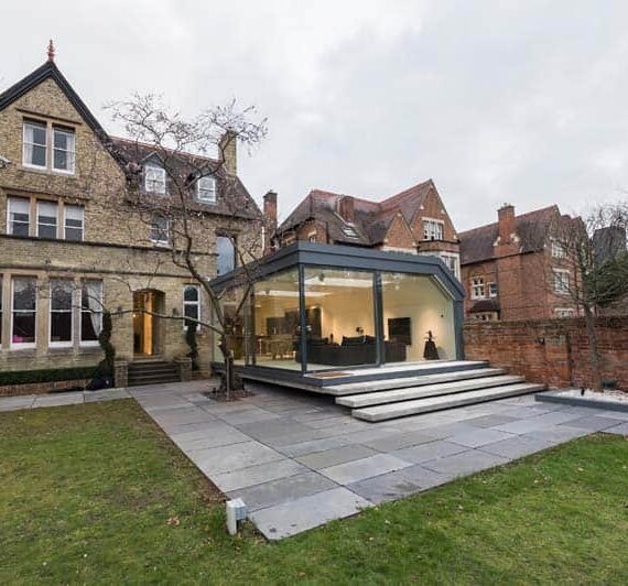 Single storey Glass extension. Internal structural alterations. Zinc roof. Glazed skylights. Floating structural slab and steps.